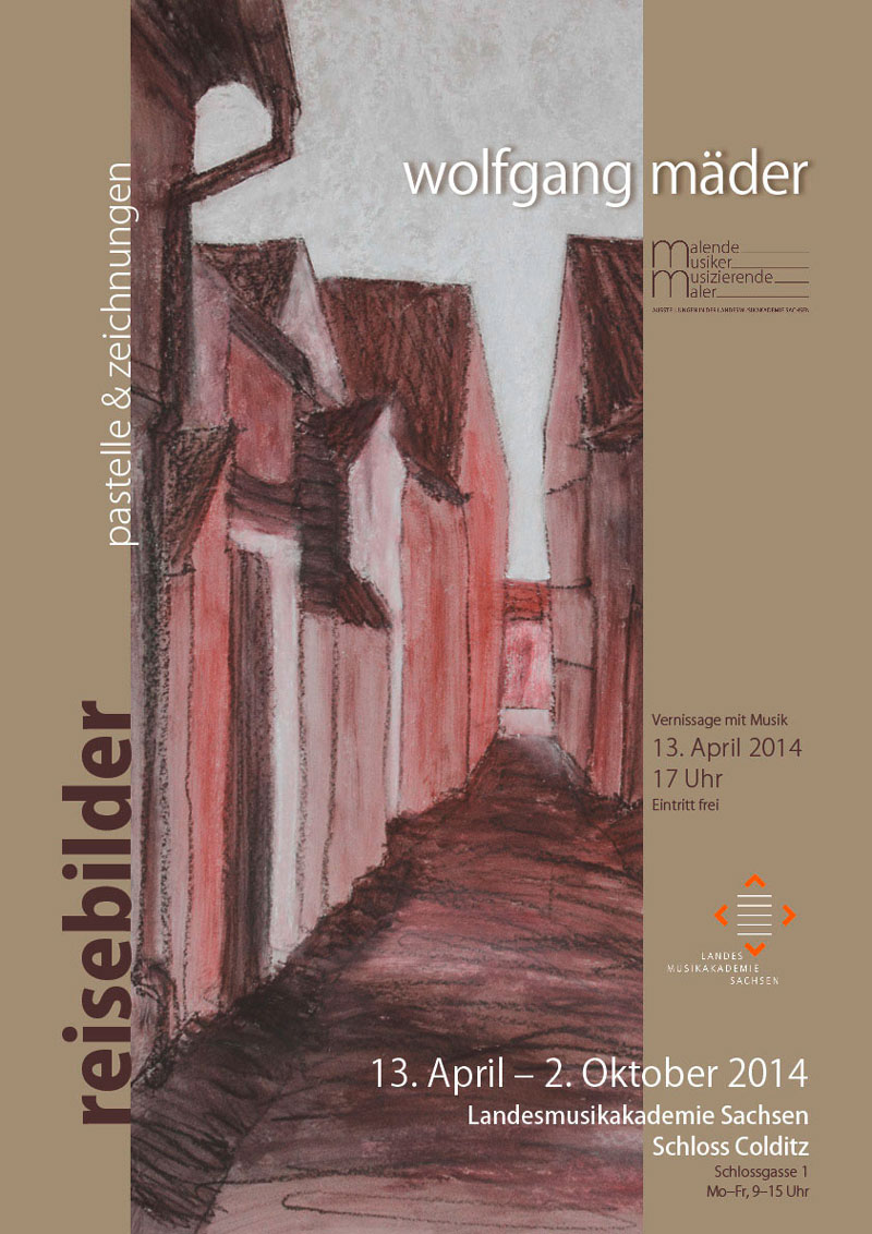 Die mit »Reisebilder« betitelte Ausstellung zeigte werden Arbeiten von Prof. Wolfgang Mäder, in denen der Leipziger Künstler seine Eindrücke verschiedener Reisen u.a. nach Italien aber auch durch verschiedene Regionen Deutschlands und nicht zuletzt Sachsens festgehalten hat. Zu sehen sind Pastelle, die in ihrer zurückhaltenden Farbigkeit eine enorme Intensität erzeugen sowie Zeichnungen, die von einer beglückenden Beobachtungsgabe ihres Urhebers zeugen.